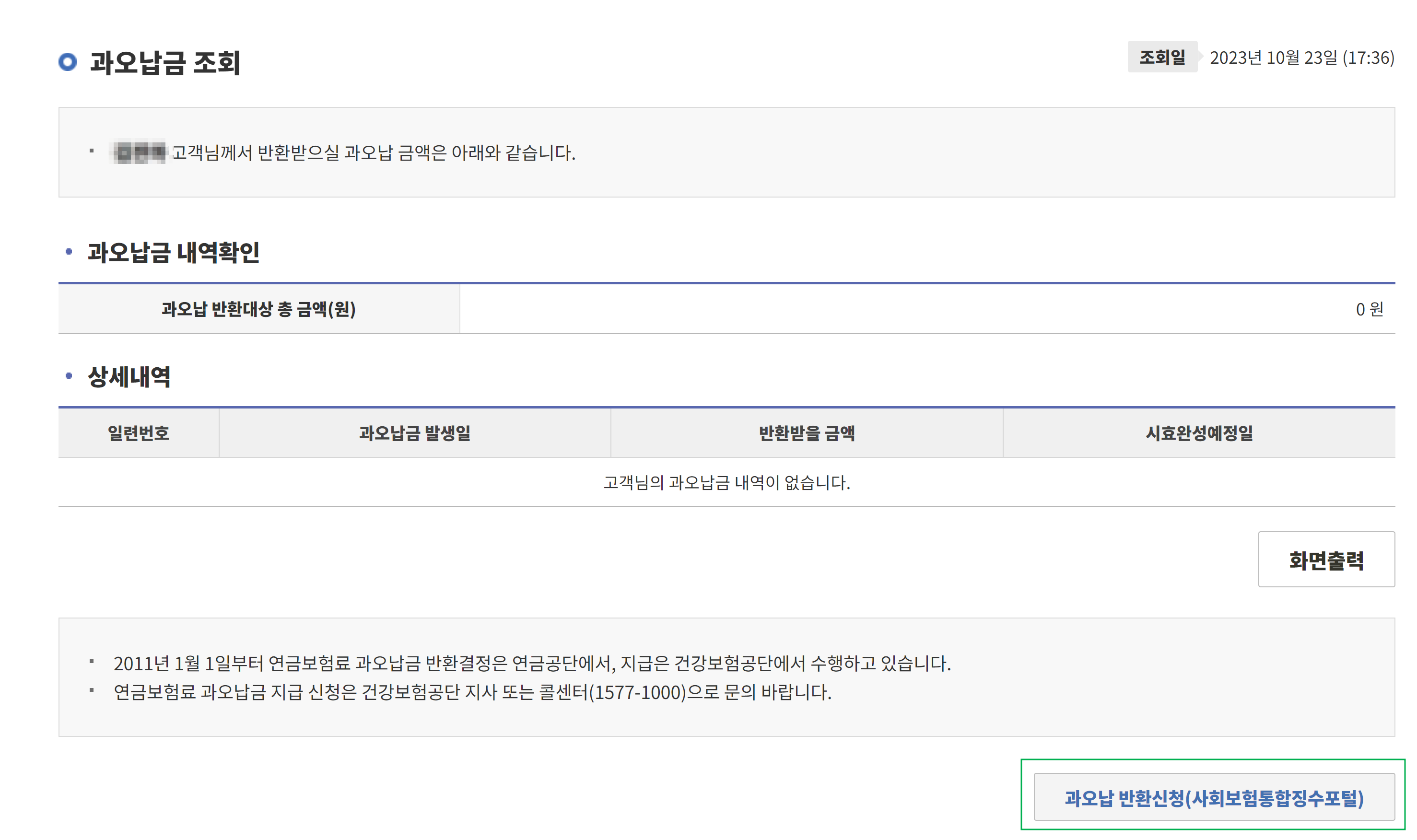 3. 과오납된 보험료와 환급 가능한 금액을 확인합니다.
